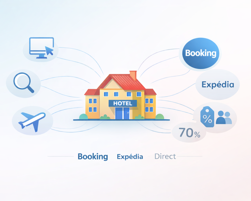 Booking, Expedia, Hotels.com — les OTAs ont simplifié la distribution hôtelière. Ils ont aussi installé une dépendance dont beaucoup de directeurs peinent à sortir. Des commissions qui grimpent, une relation client captée, une visibilité sur laquelle on n'a plus vraiment la main.
